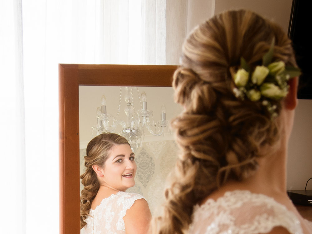 For your wedding day consultation bring along hairstyles you love and those you find inspiring. Many brides create a storyboard of ideas including wedding and bridesmaid dress styles, veil and headpiece or bouquet ideas. Photographs from your dress fittings or fabric samples you have chosen are great inspiration too, as are your various wedding day locations as we aim for your hair to look stunning all day, no matter where you go.